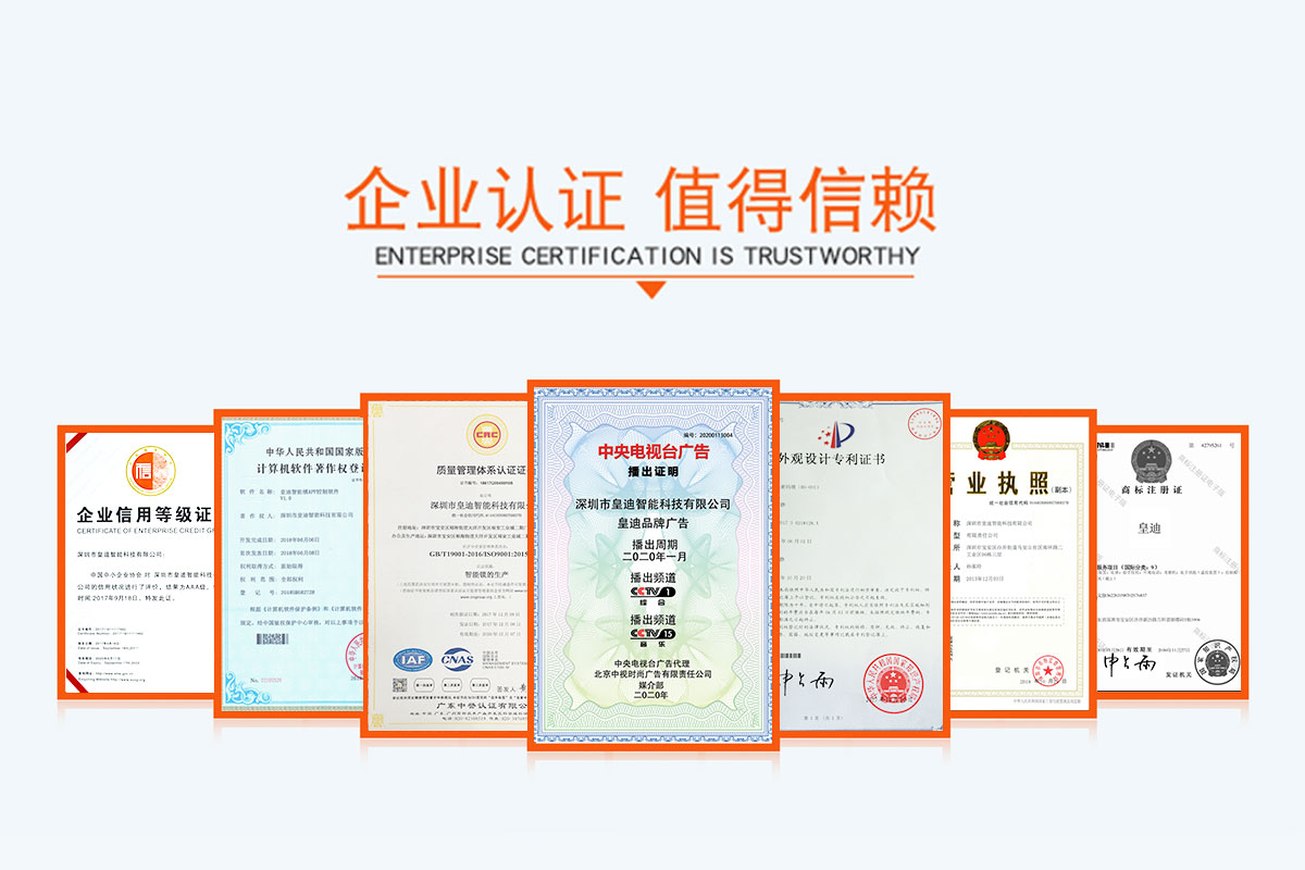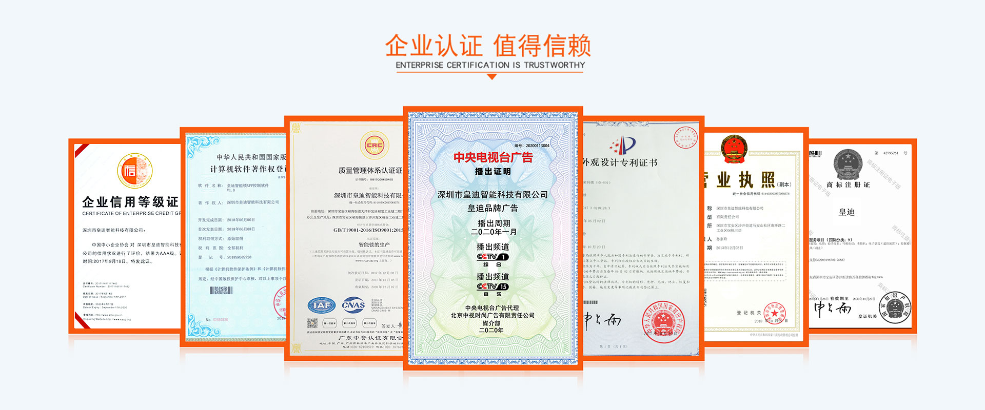 深圳市皇迪智能科技有限公司,是一家集產(chǎn)品研發(fā)、制造、銷售、安裝、售后于一體的全產(chǎn)業(yè)鏈公司,我司專注于酒店刷卡鎖、公寓藍(lán)牙密碼鎖、電子鎖、密碼鎖研發(fā),生產(chǎn),銷售.是國家高新技術(shù)企業(yè),公司已通過ISO9001/2015標(biāo)準(zhǔn)認(rèn)證,并擁有多項(xiàng)國家實(shí)用新型專利、外觀專利及計(jì)算機(jī)軟件著作權(quán); 皇迪玻璃門鎖廠家一直秉承“以顧客為中心,以人為本,長期艱苦奮斗”的經(jīng)營理念,為全球每一位消費(fèi)者提供舒適,便捷,安全的高品質(zhì)生活。